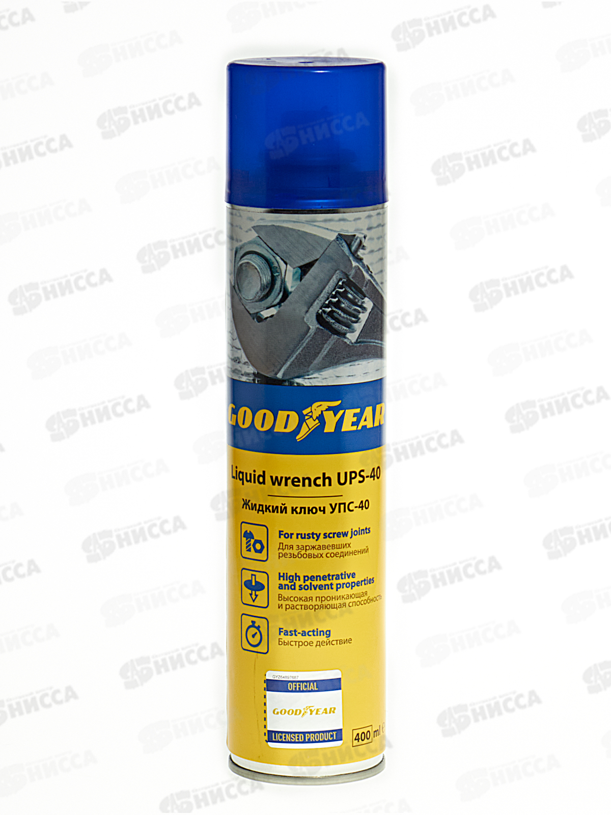 Универсальное средство УПС-40 Goodyearприменяется для очищения резьбовых и других металлических соединений от ржавчины и окислившихся наростов. Позволяет вернуть подвижность металлическим соединениям различного характера. Состав: алифатический растворитель ?30%, минеральное масло 15-30%, пропан-бутан 15-30 %, функциональные добавки 5-15%, ароматизатор <5%.