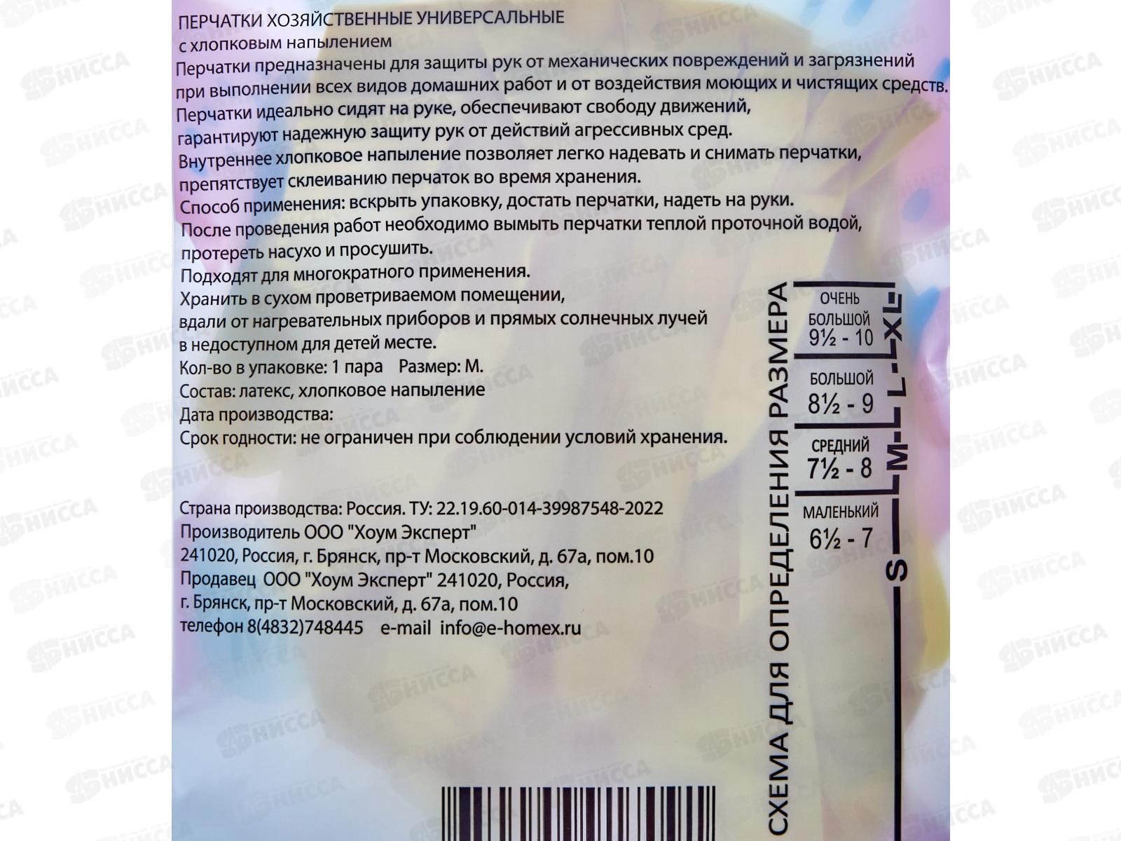 Homex Перчатки хозяйственные с хлопковым напылением р.M Очень нежные