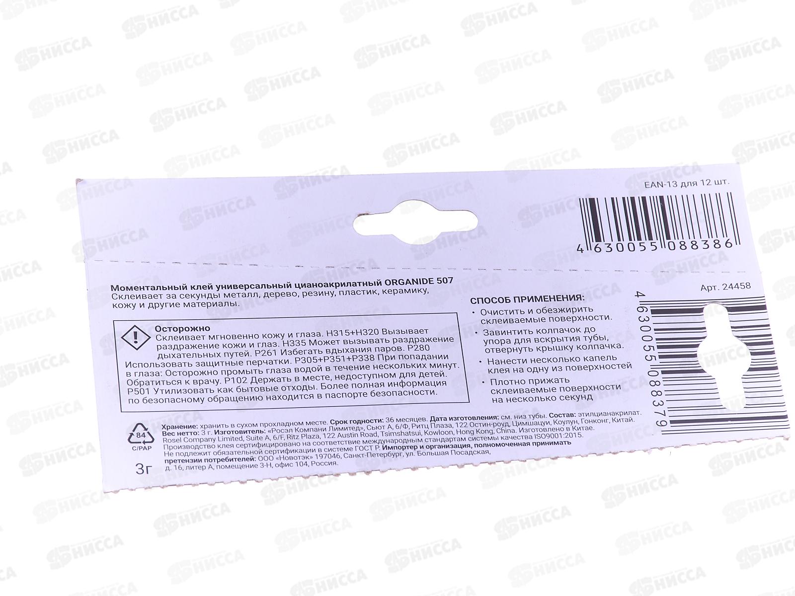 Клей моментальный ORGANIDE 507 3г *12/288
