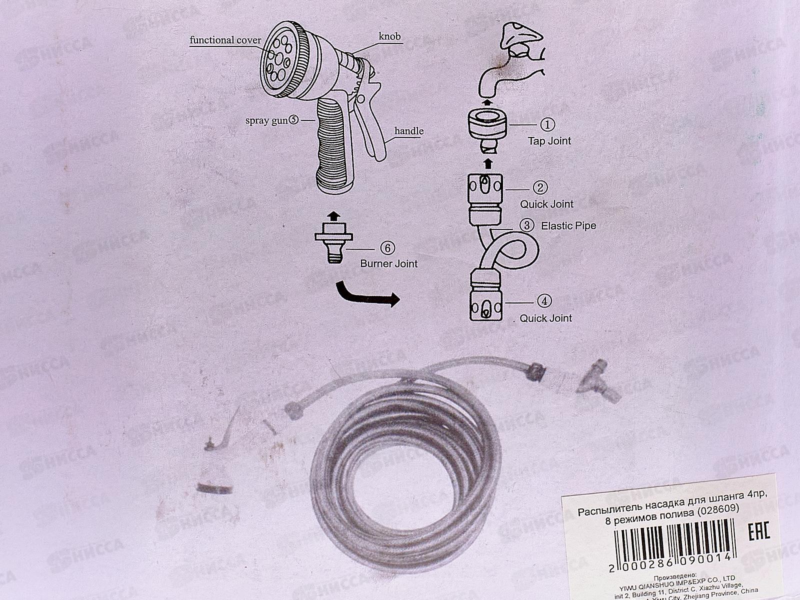 Распылитель насадка для шланга 4 предмета 8 режимов полива (028609) Ж