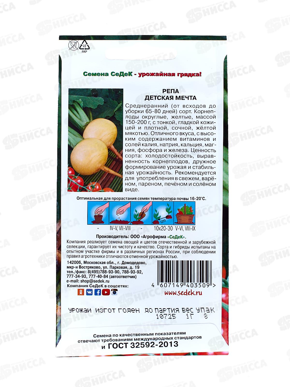 Репа Детская Мечта (Евро, 1) СеДек +