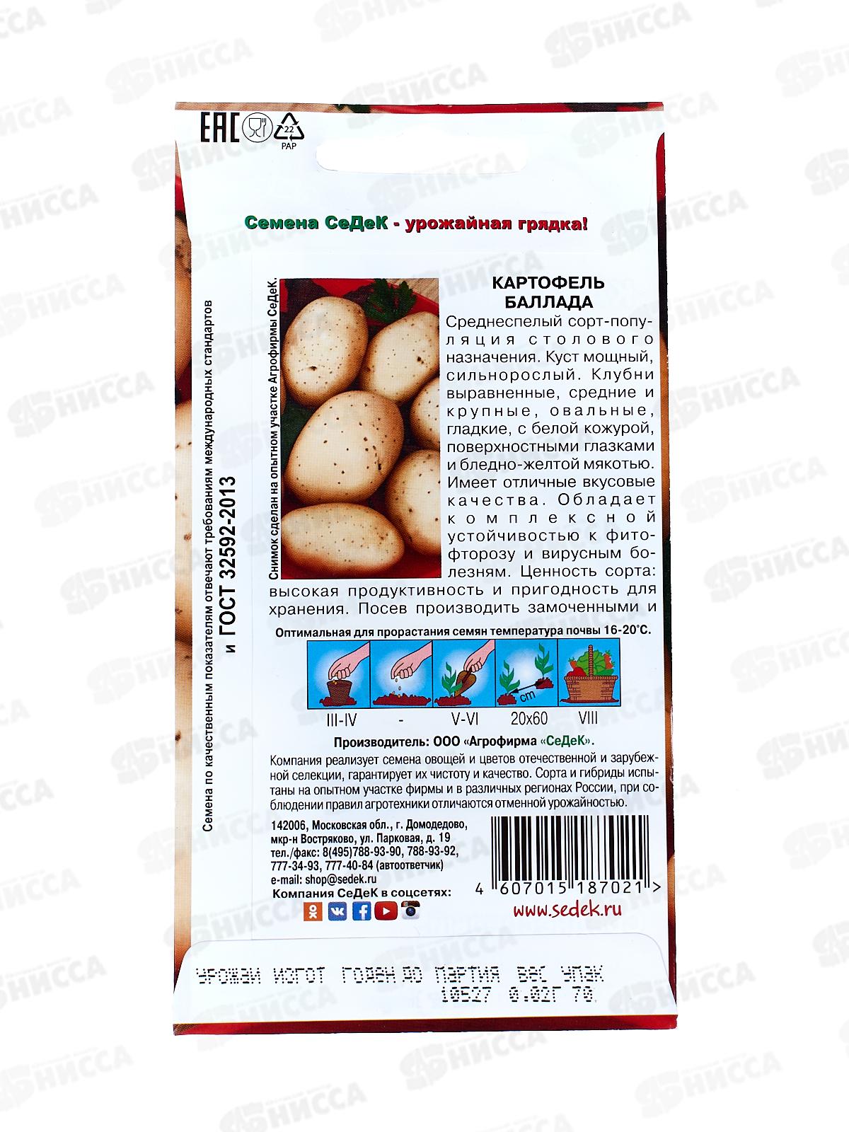 Картофель Баллада (Евро, 0,02, 0375) *10 СеДек