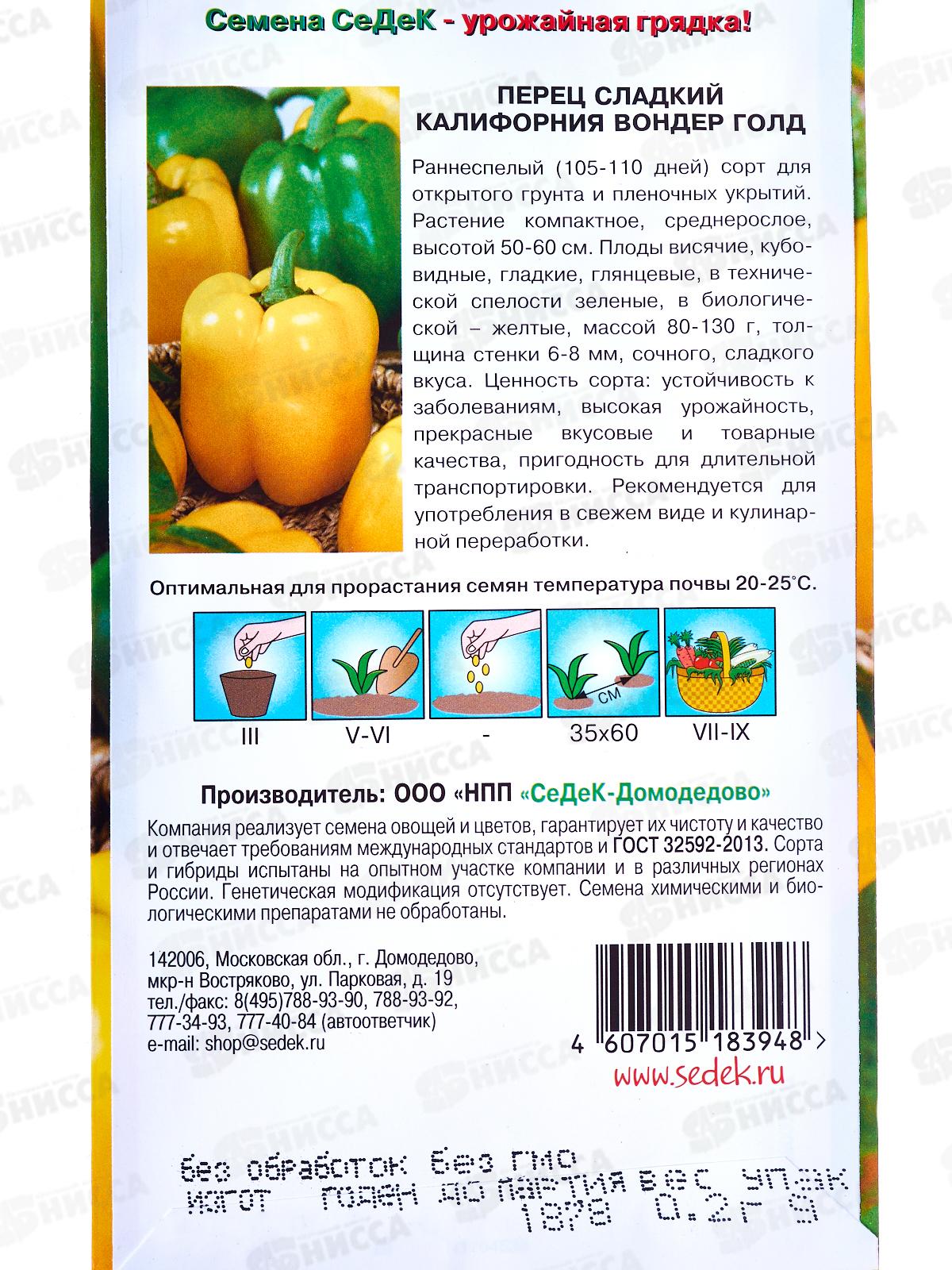 Перец Калифорния Вондер Голд (сл) (Евро, 0,2) СеДек *10