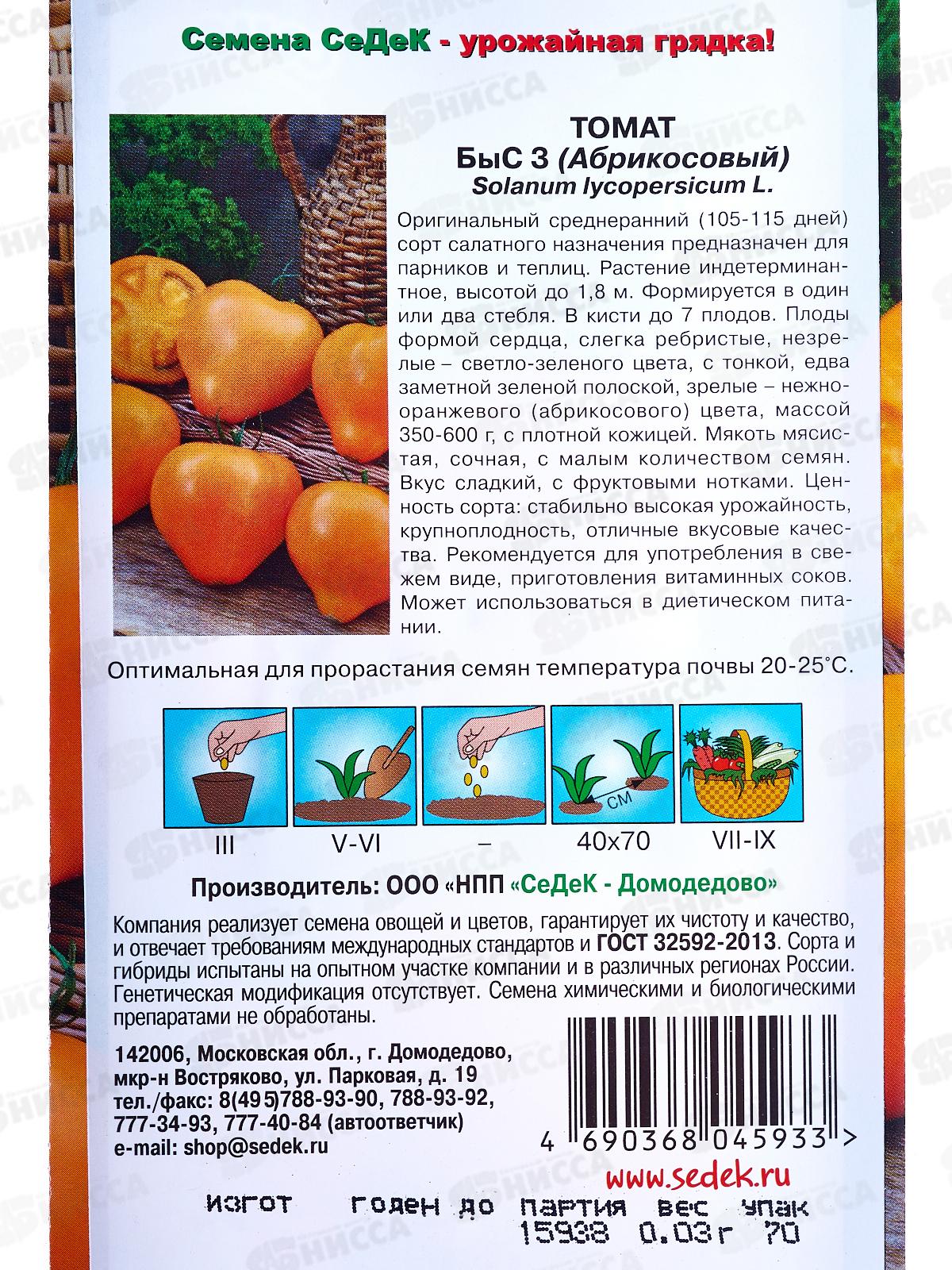 Томат Быс 3 Абрикосовый (Евро, 0,03г) СеДек *10