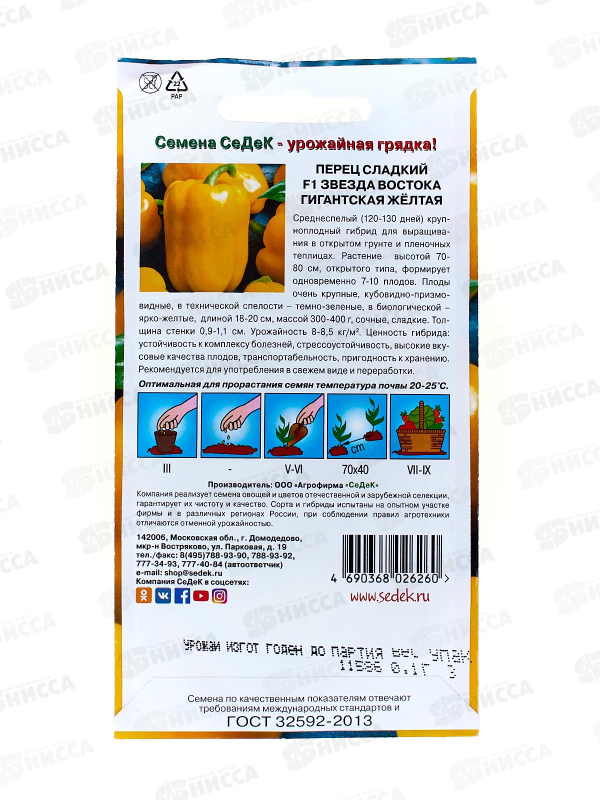 Перец Звезда Востока Желтая F1 (сладкий) Гигант (Евро, 0,1 9895) СеДек *5