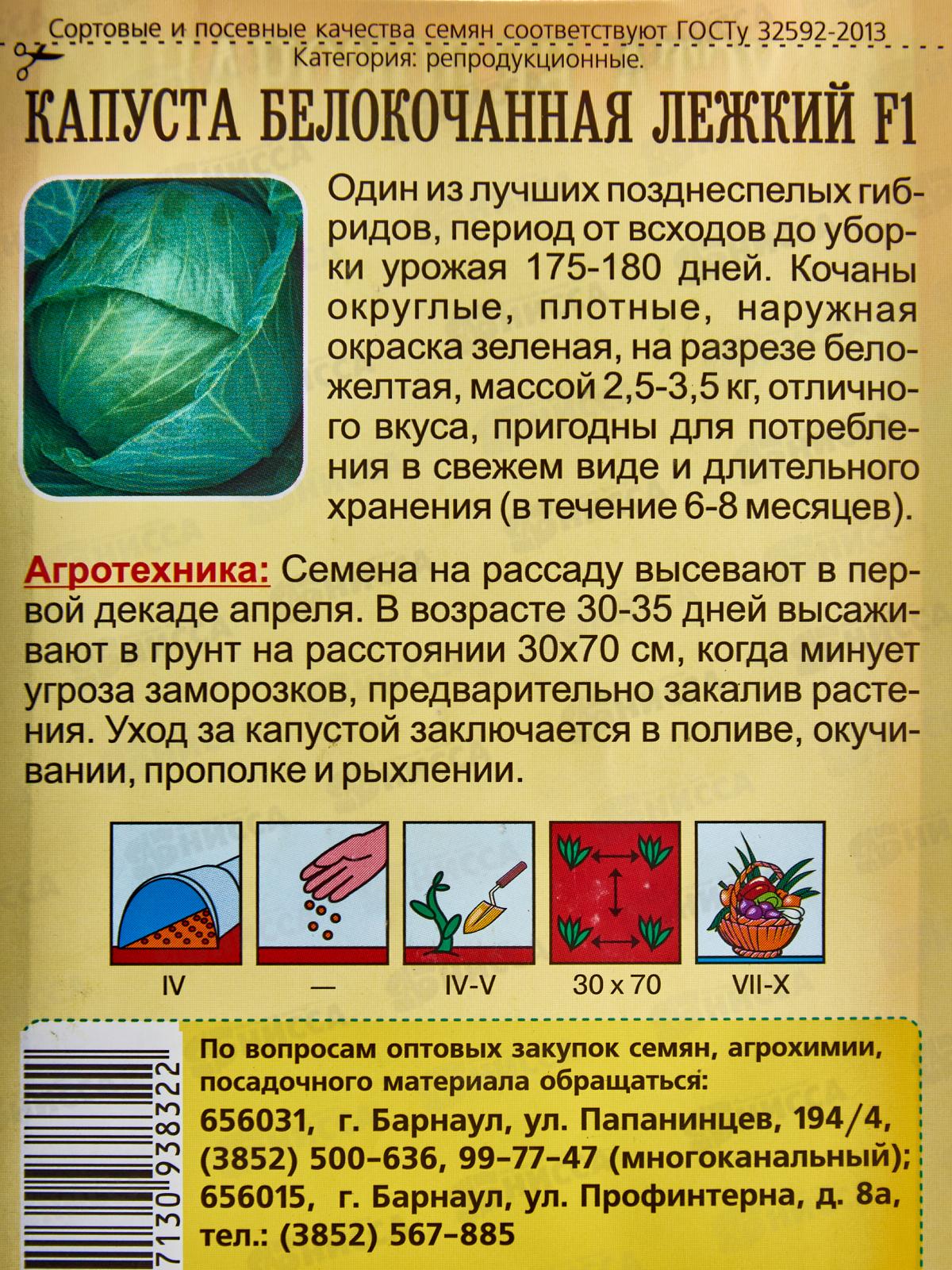 Один из лучших позднеспелых гибридов, период от всходов до уборки урожая 175-180 дней. Кочаны округлые, плотные, наружная окраска зеленая, на разрезе бело-желтая, массой 2,5-3,5 кг, отличного вкуса, пригодны для потребления в свежем виде и длительного хранения (в течение 6-8 месяцев).