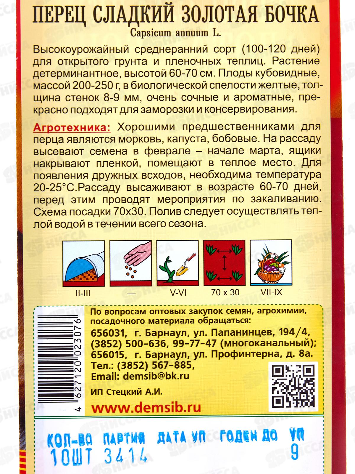 Высокоурожайный среднеранний сорт (100-120 дней) для открытого грунта и пленочных теплиц. Растение детерминантное, высотой 60-70 см. Плоды кубовидные, массой 200-250 г, в биологической спелости желтые, толщина стенок 8-9 мм, очень сочные и ароматные, прекрасно подходят для заморозки и консервирования.