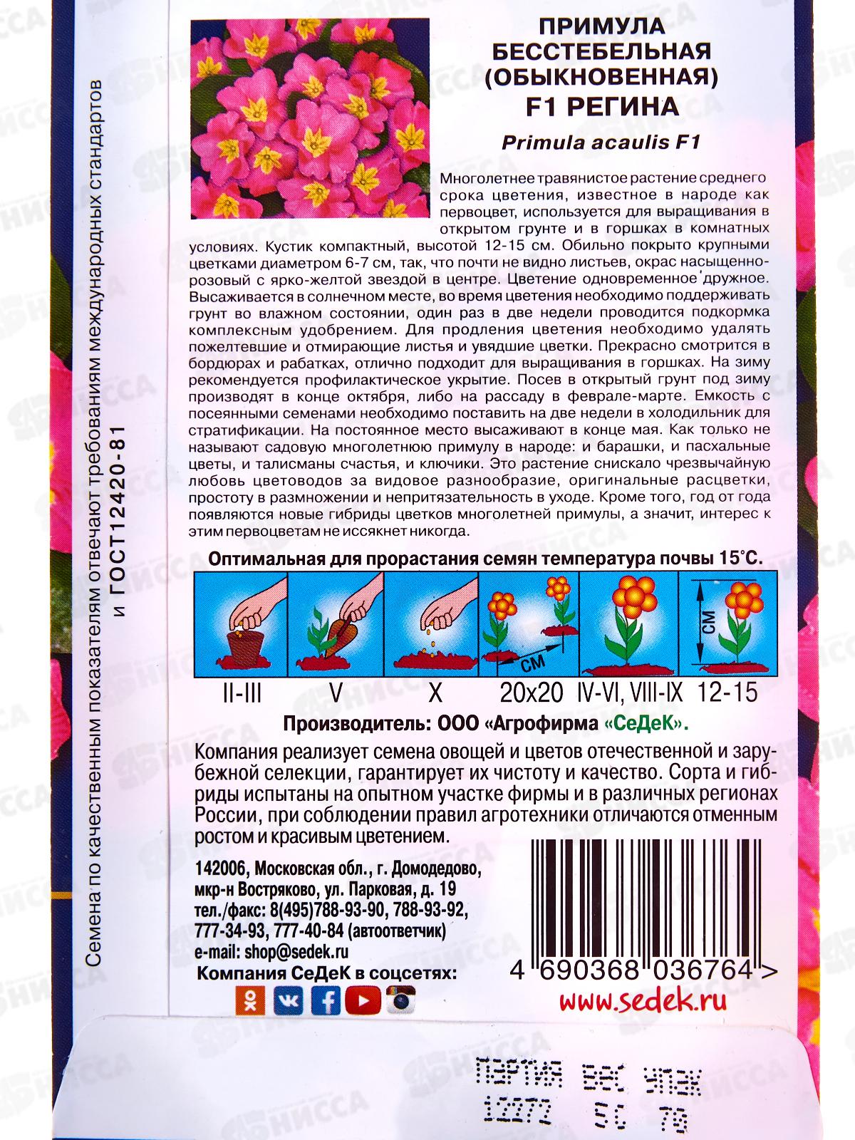 Примула Регина F1 (бесстебельная) (Евро, 5) СеДек *10 +