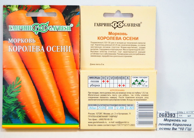 Морковь на ленте Королева осени 8м *10 ГШ +