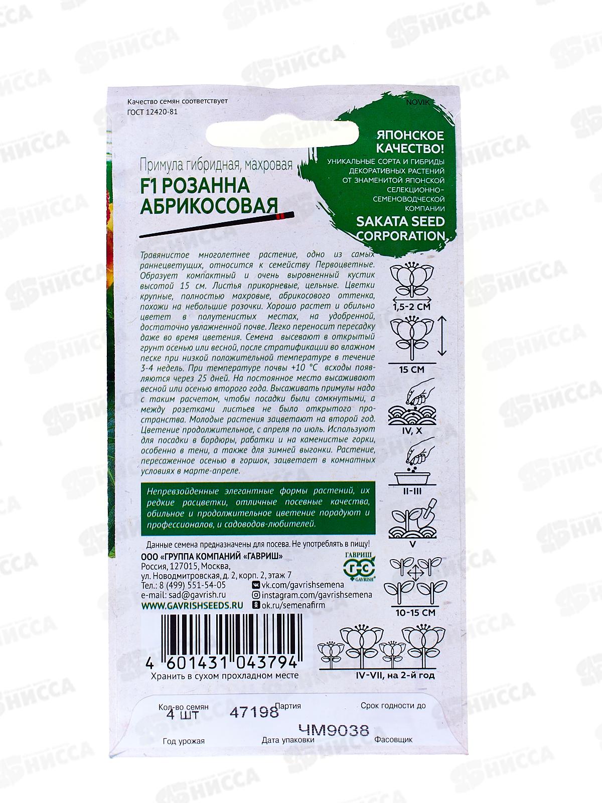 СРОК ДО Примула Розанна абрикосовая F1 махровая 4 штуки Саката серия Экслюзив Н13 *5 СРОК 12.25