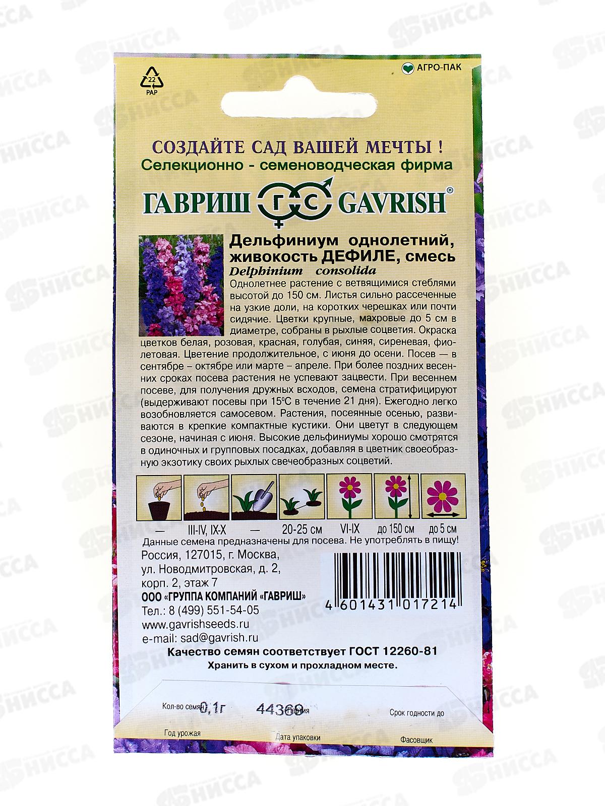 Дельфиниум Дефиле однолетников смесь 0,1 грамм Н9 *10 ГШ