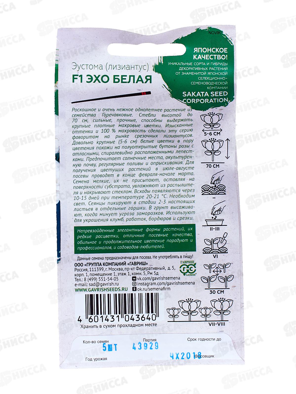 Эустома Эхо белая F1 5шт гранул в пробирке *10 ГШ