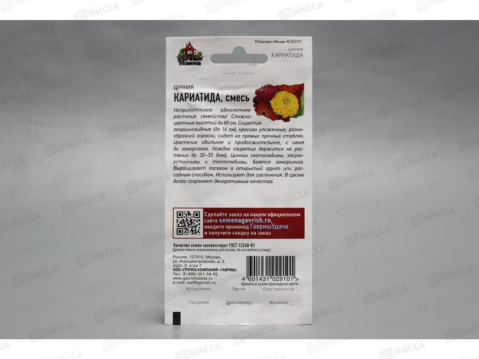 Цинния Кариатида смесь 0,3 грамма Удачная серия *10 ГШ