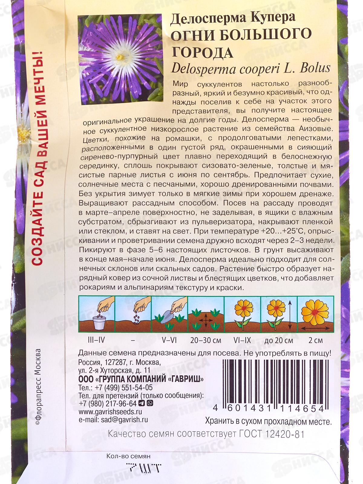 Мир суккулентов настолько разнообразный, яркий и безумно красивый, что, однажды поселив к себе на участок этого представителя, вы получите настоящее оригинальное украшение на долгие годы. Делосперма — необычное суккулентное низкорослое растение из семейства Аизовые. Цветки, похожие на ромашки, с продолговатыми лепестками, расположенными в один густой ряд, окрашенными в сияющий сиренево-пурпурный цвет, плавно переходящий в белоснежную серединку, сплошь покрывают сизовато-зеленые, толстые и мясистые парные листья с июня по сентябрь. Предпочитает сухие, солнечные места с песчаными, хорошо дренированными почвами. Без укрытия зимует только в мягкие зимы при хорошем дренаже. Выращивают рассадным способом. Посев на рассаду проводят в марте-апреле поверхностно, не заделывая, в ящики с влажным субстратом, сбрызгивают из пульверизатора, накрывают пленкой или стеклом, и ставят на свет. При температуре +20…+25оС, опрыскивании и проветривании семена дружно всходят через 2-3 недели. Пикируют в фазе 5-6 настоящих листочков. В грунт высаживают в конце мая-начале июня. Делосперма идеально подходит для солнечных склонов или скальных садов. Растение быстро образует нарядный ковер из сочной листвы и блестящих цветков, что добавляет рокариям и альпинариям текстуру и краски.