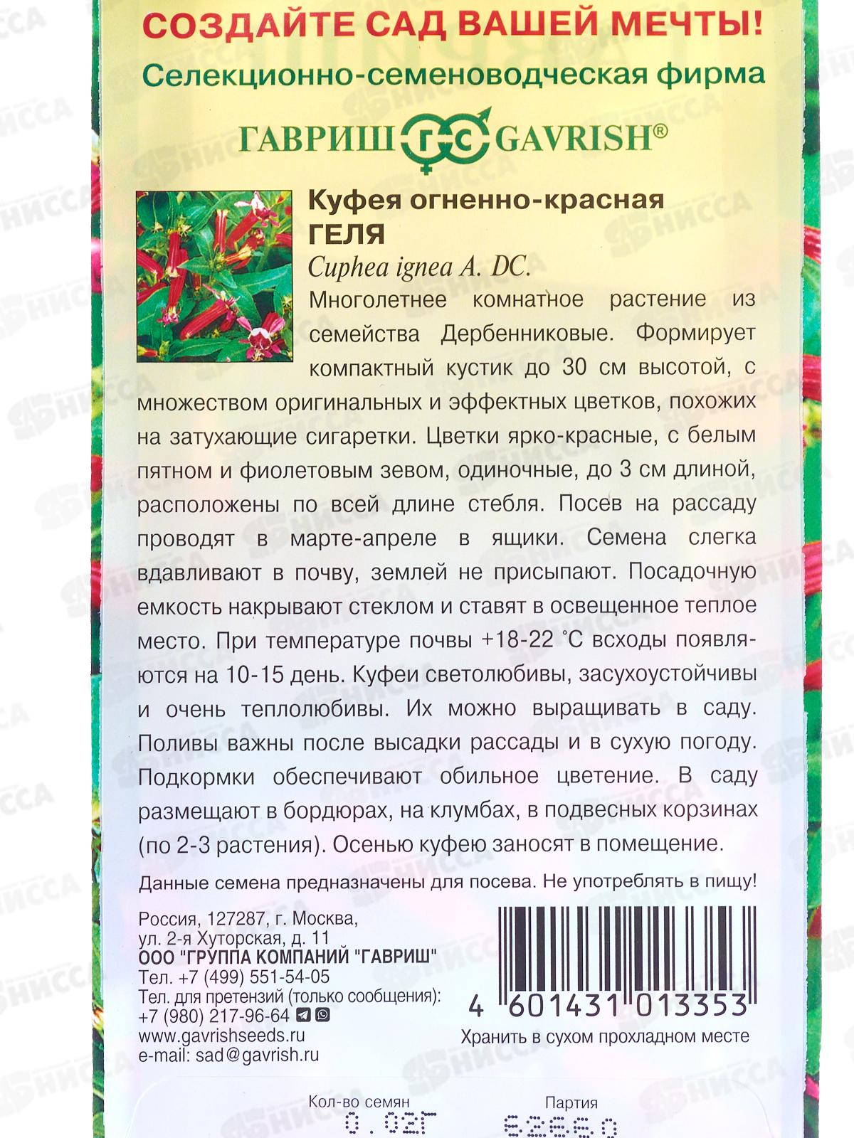 Куфея огненно-красная Геля 0,02г *10 ГШ +