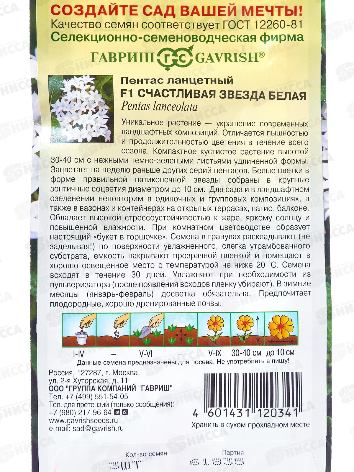 Пентас Счастливая звезда белая F1 гран 3шт пробир Н24 *10 ГШ +