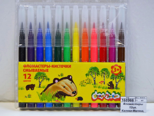 Фломастеры-кисточки Каляка - Маляка одни из самых ярких, долговечных и безопасных фломастеров на рынке. Разработаны для детей в возрасте от 3 лет. Богатая палитра ярких сочных цветов позволит детям воплотить любую фантазию в рисунок. Фломастеры-кисточки Каляка - Маляка имитируют художественную кисть: наконечник в форме кисточки оставляет характерный след. Толщина линии зависит от силы нажатия на фломастер. Выпускаются в удобном пластиковом блистере с европодвесом. Утолщённый корпус фломастера 10 мм. Диаметр пишущего наконечника 3,5 мм. Наконечник — кисть. В наборе 12 ярких, сочных цветов. Богатая палитра оттенков. Фломастеры Каляка - Маляка соответствуют самым высоким мировым стандартам качества и безопасности! Полипропиленовый корпус обладает повышенной устойчивостью к излому, не образует острых краев при повреждении. Безопасный вентилируемый колпачок обеспечит свободное прохождение воздуха при случайном попадании в дыхательные пути. Прочный пишущий узел не деформируется и не продавливается. Чернила на водной основе. Свежие следы фломастеров легко отстирываются с большинства тканей и смываются с кожи ребёнка!