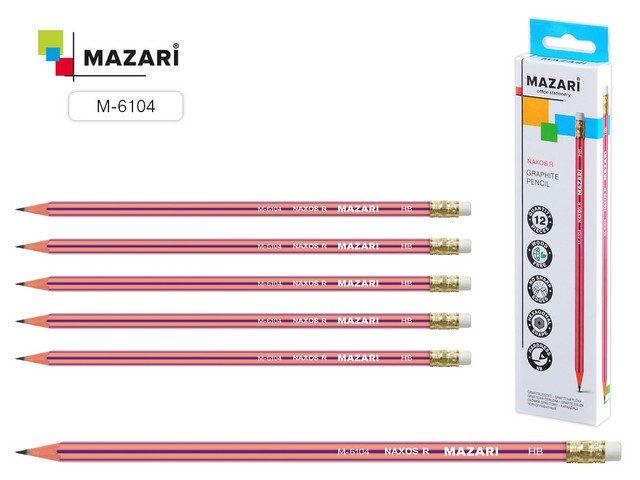 Карандаш чернографитный с ластиком MAZARI Naxos R, HB, пластиковый , M-6104 *12/72/1152