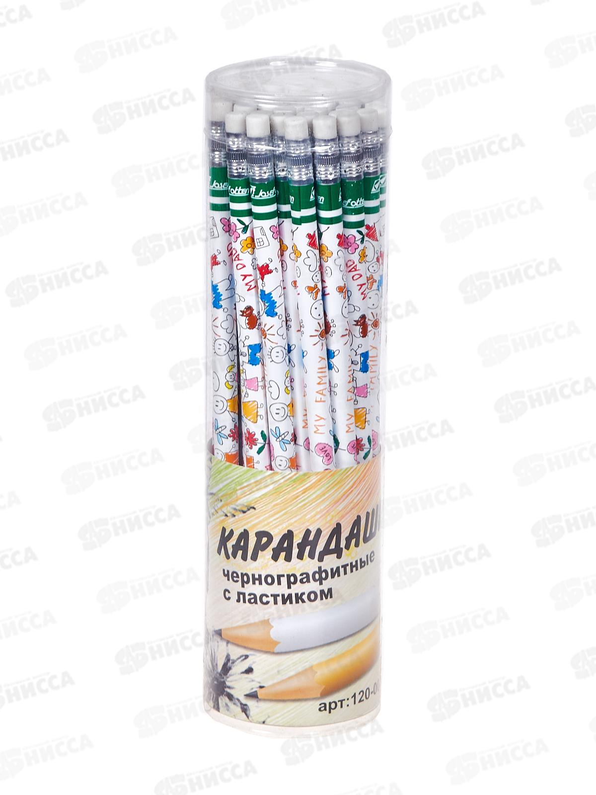 Карандаш чернографитный с ластиком J.OTTEN Моя семья, деревянный ., НВ 120-003 *36/288/1728