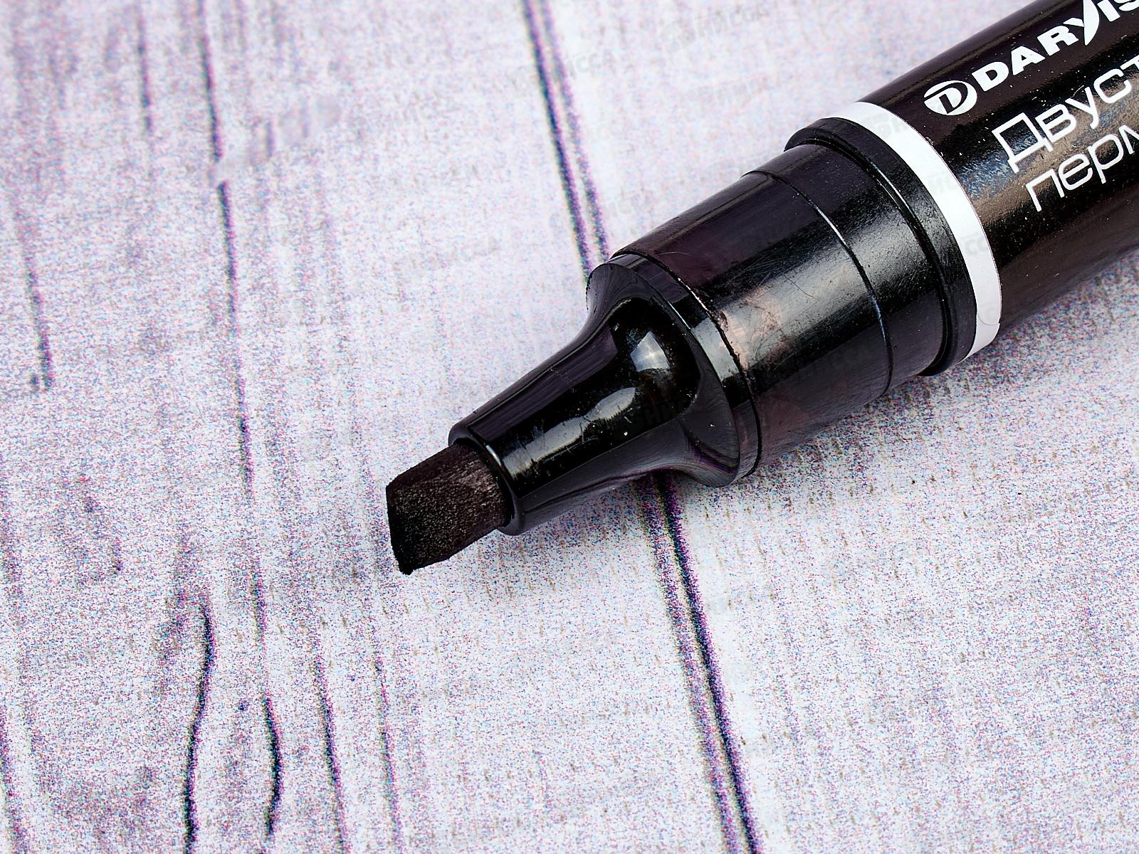 Двусторонний перманентный маркер от Darvish, DV-422-02. Маркер имеет пулевидный и клиновидный наконечник, толщина линии 1-5 мм. Чернила на спиртовой основе. Цвет чернил - черный. Подходит для использования на большинстве поверхностей.