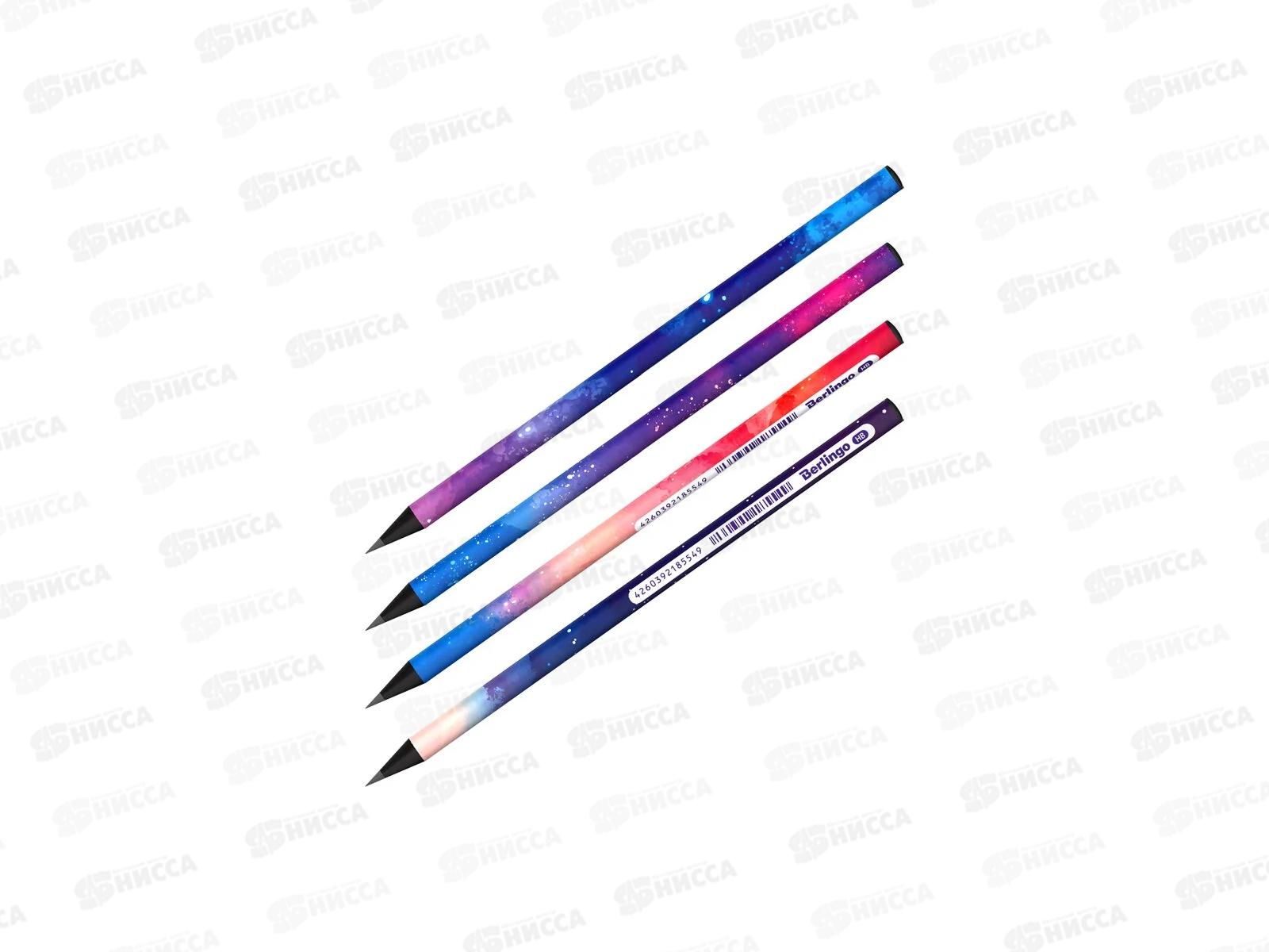 Чернографитный ударопрочный карандаш Berlingo "Universe" из черного дерева, с заточкой. Матовое покрытие корпуса. Не ломается при падении. Подходит для черчения и рисования.