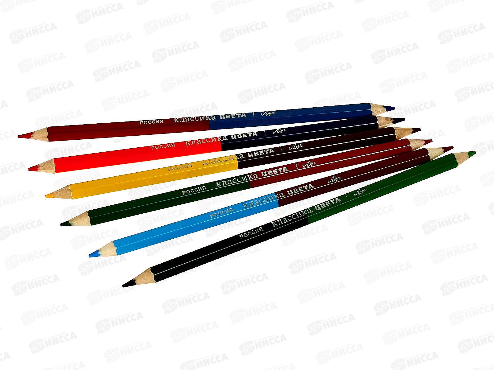 Карандаши 6 штук, 12 цветов ЛУЧ двухсторонние Классика,33С 2189-08*16/128