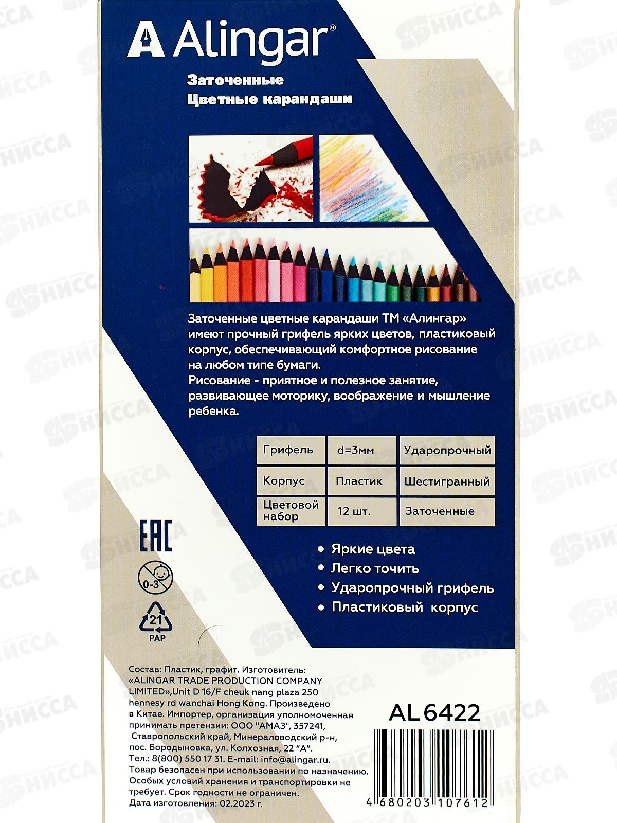 Карандаши 12цв Alingar Сказочный мир пластик. шемтигран., заточ AL642212/120/240