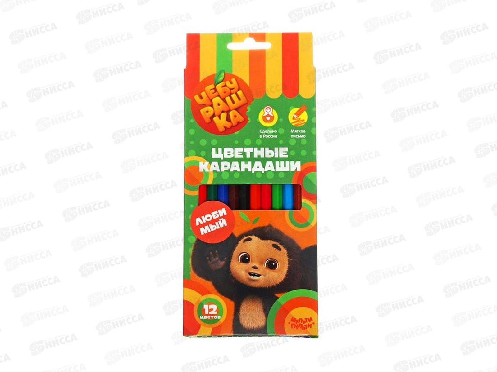 Карандаши 12 цветов МП Чебурашка, картонная упаковка, 52996 *16