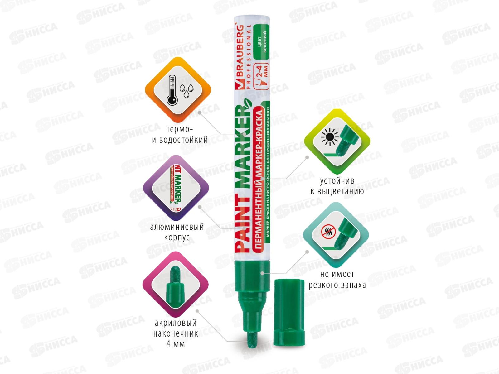 Маркер-краска BRAU лаковый зеленый,4мм б/запаха алюм.корпус 150879 *12