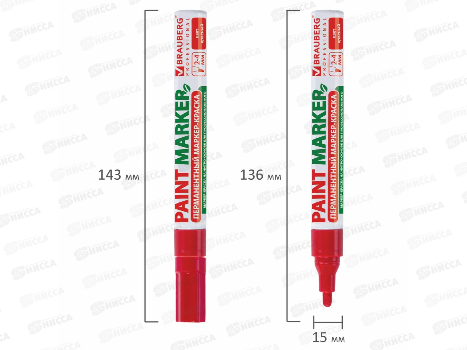 Маркер-краска BRAU лаковый красный,4мм б/запаха алюм.корпус 150874 *12