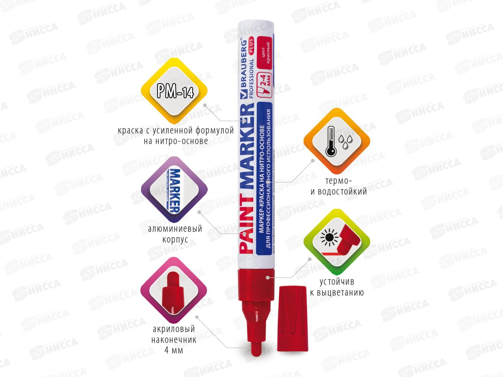 Маркер-краска лаковый BRAUBERG предназначен для маркировки различных материалов в промышленных условиях: бетона, дерева, стекла, металла, резины, пластика. Заправлен краской с усиленной формулой на нитро-основе РМ-14. Чернила с лаковым эффектом производства компании MULTICHEM являются экологичными и безопасными для окружающей среды. Благодаря усиленной формуле идеально подходят для нанесения долговечной маркировки на любых поверхностях, включая влажные.