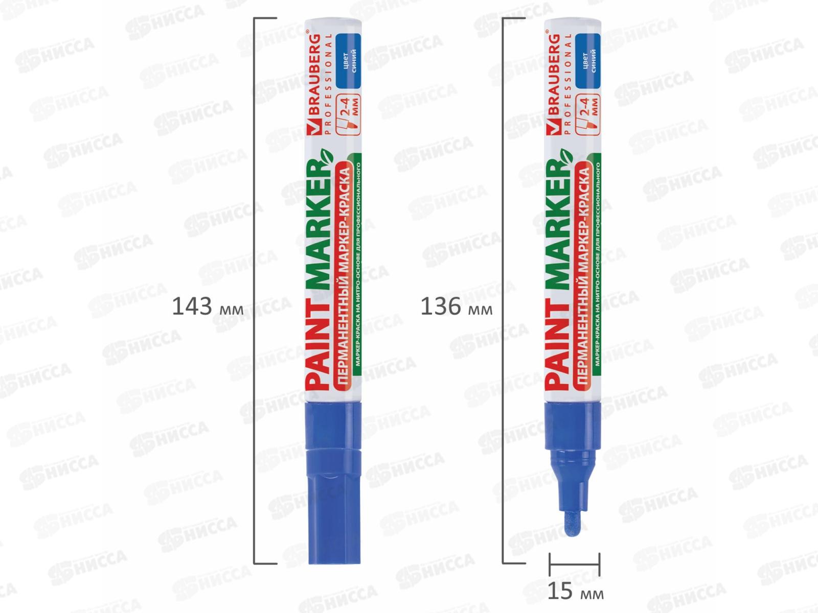 Маркер-краска BRAU лаковый синий, 4мм б/запаха алюм.корпус 150873 *12