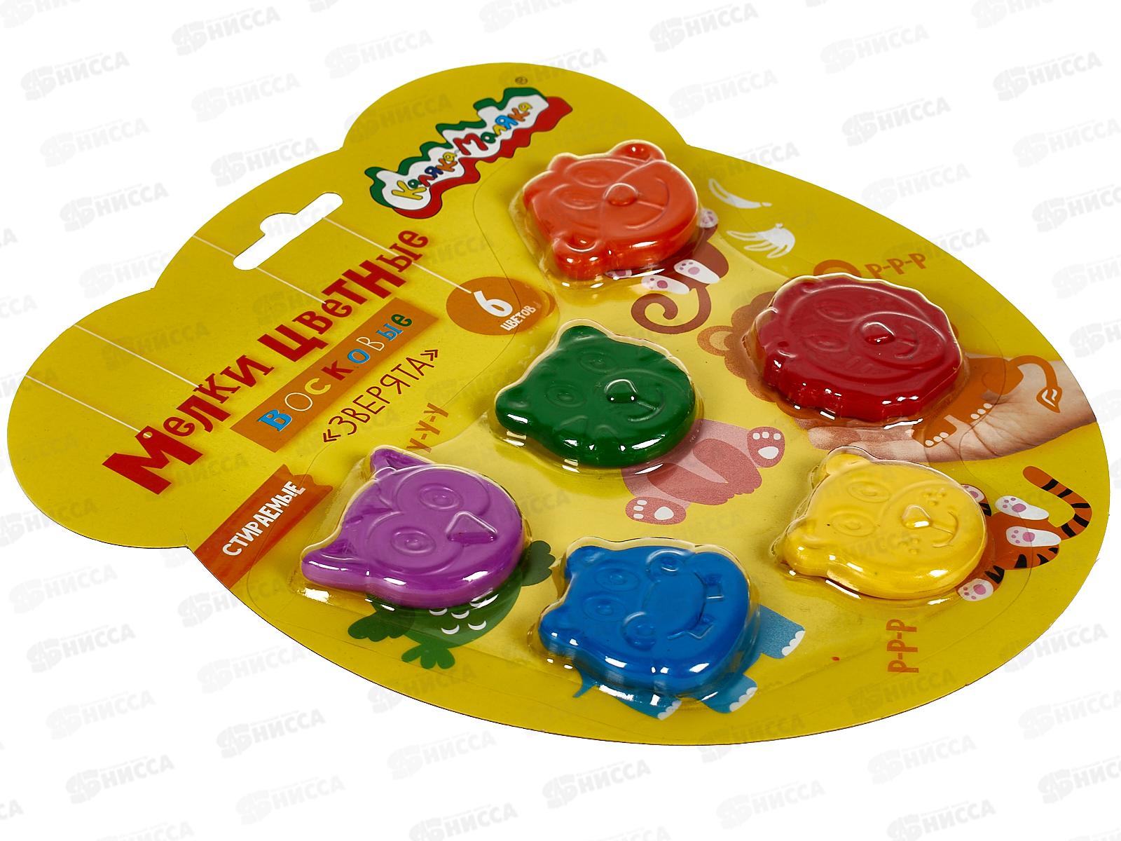 Мелки воск. Каляка-Маляка 6цв. Зверята фигурные КВЗП6 *24