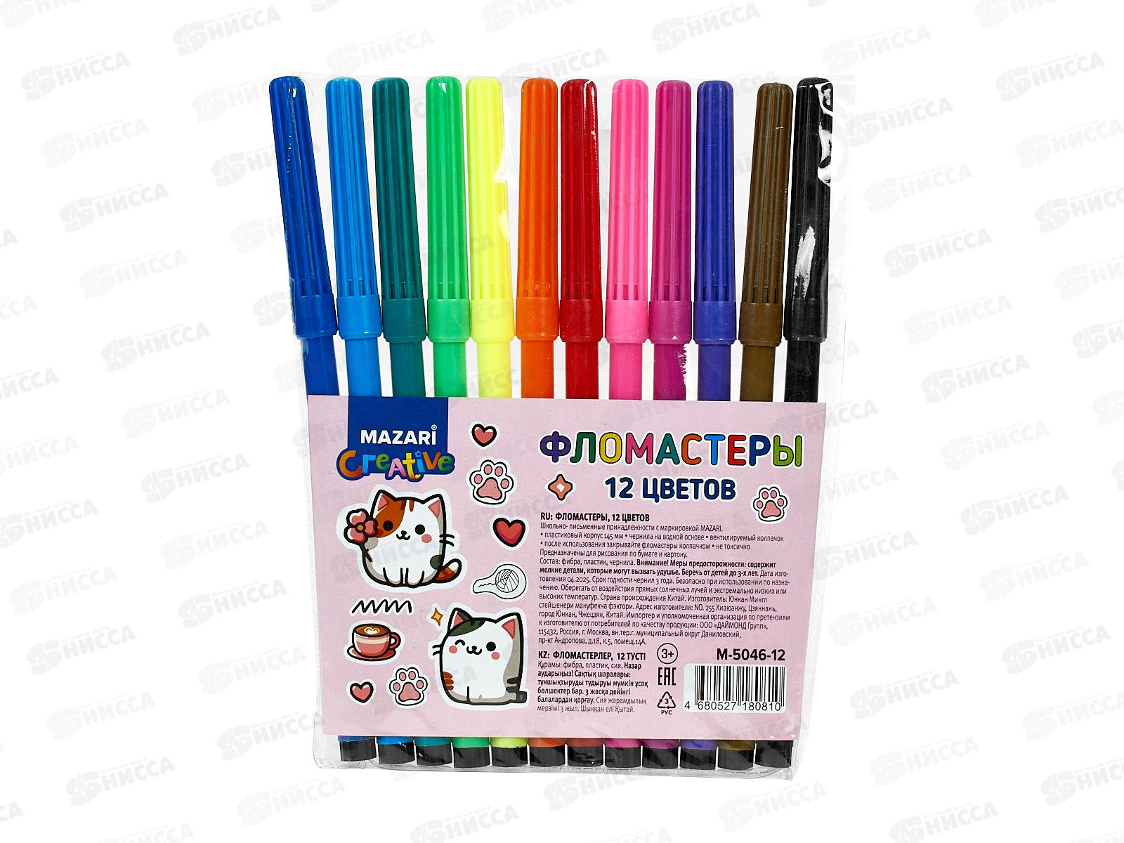 Фломастеры 12цв. MAZARI Котики вент.колп.,, M-5046-12 *12/240