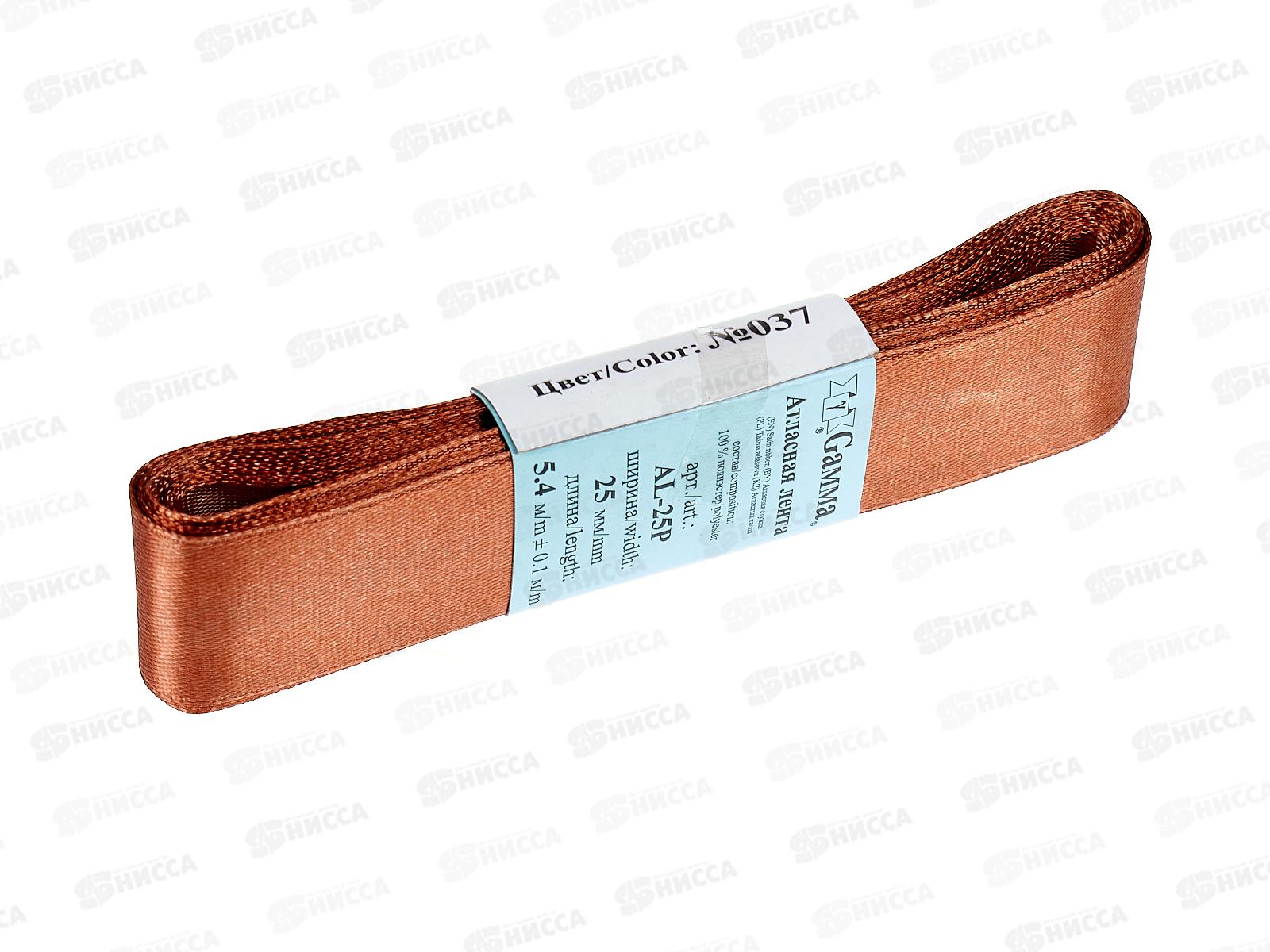 Лента атласная "Gamma" 25мм (1") №037 светло-коричневый, 5,4м AL-25Pфасовка