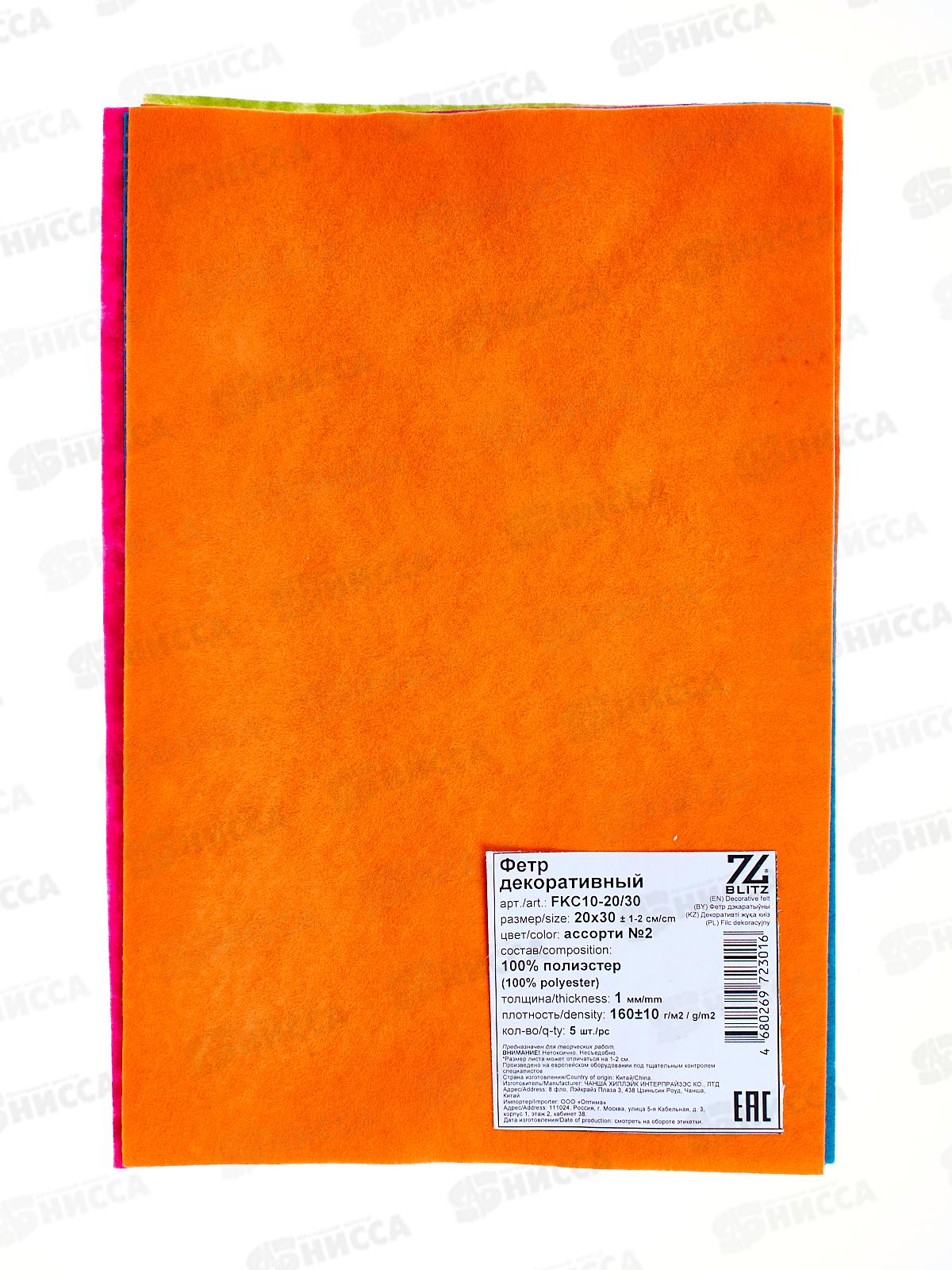 Фетр "BLITZ" 20х30+-2см 5шт ассорти №2 FKC22-20/30