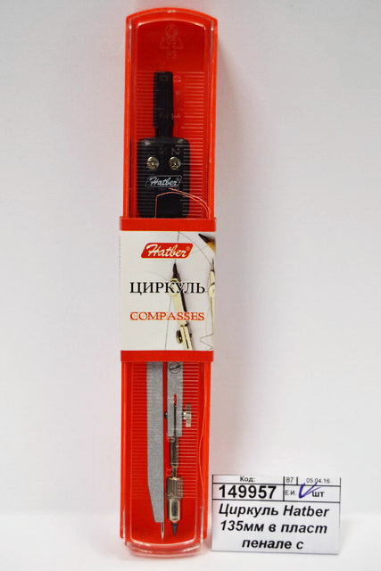 Циркуль Hatber 135мм в пластиковом пенале с линейкой, 13502 *50
