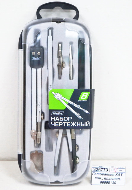 Готовальня ХАТ 8предметов, пластиковый пенал, 00008 *12