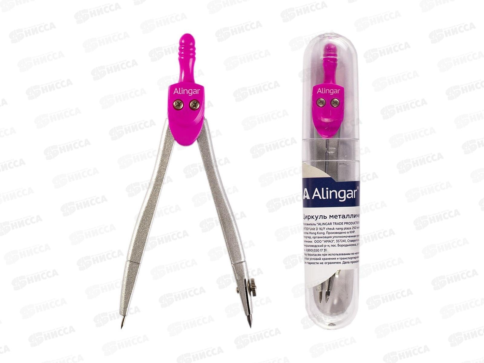 Циркуль Alingar метал., 115мм. грифель, пласт.футляр роз AL323/4 *24