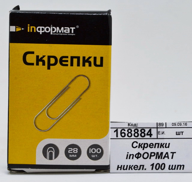 Скрепки inФОРМАТ никелированные 100шт 28мм, PCN28-100 *120