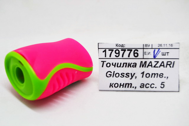 Точилка MAZARI Glossy, 1отверствие, контейнер, ассорти 5 цветов, M-6658 *42/420/840