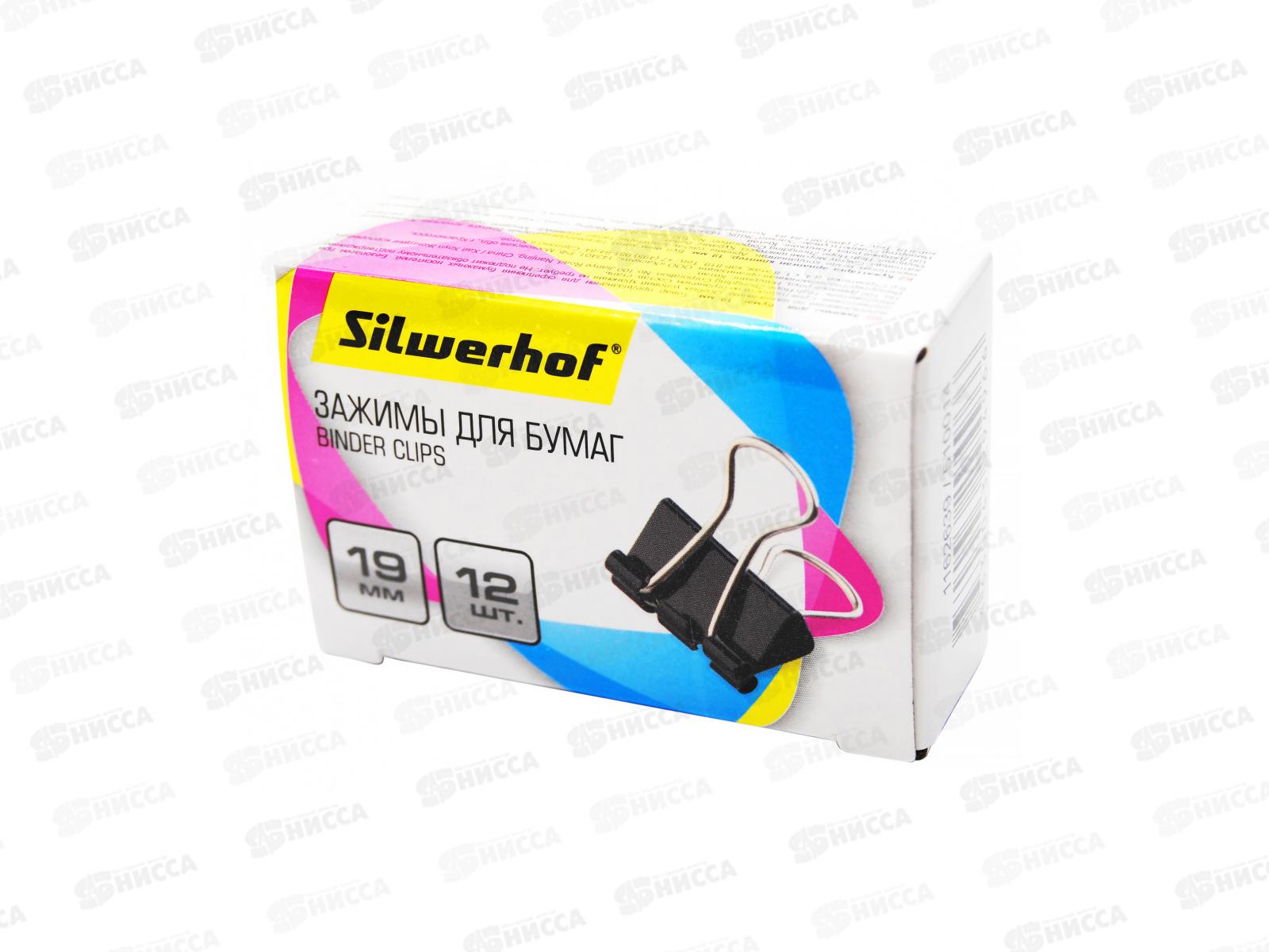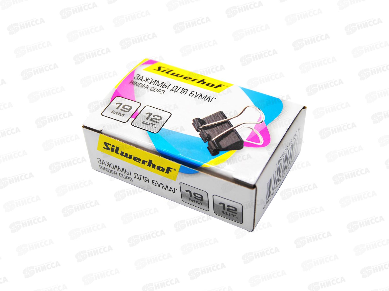 Зажим для бумаг 19мм 12шт SILWERHOF черный, 510014/1162639 *12