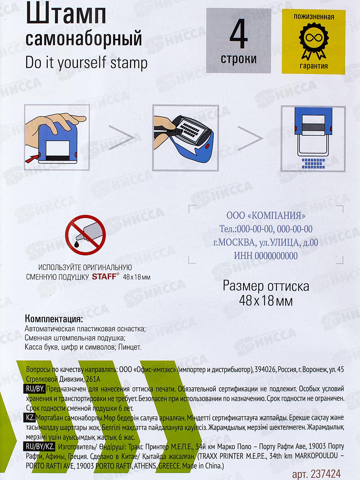 Штамп. STAFF самонаб. 4-строчный STAFF, 48х18 мм, Printer 8052,237424*10