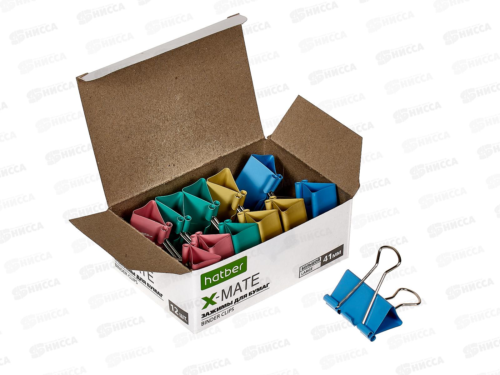 Зажим для бумаг 41мм 12шт Hatber X-Mate цветной, 083721*12/120