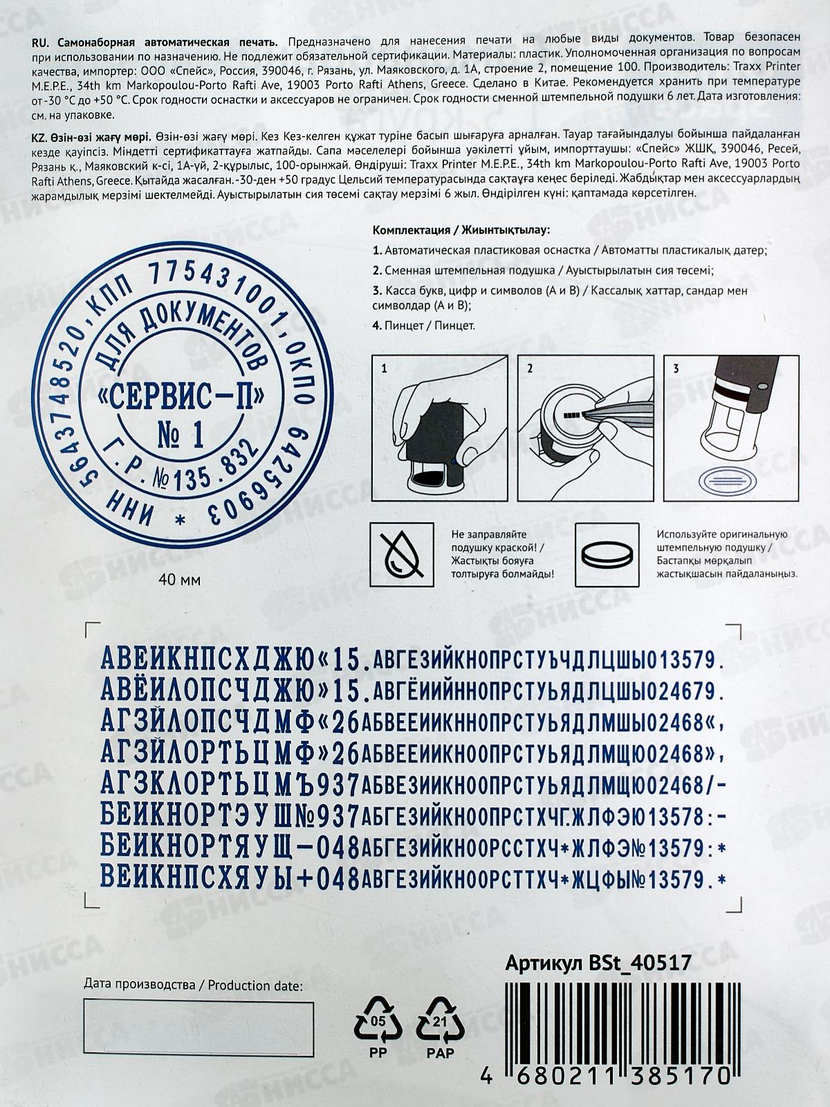 Диаметр оттиска: 40 мм