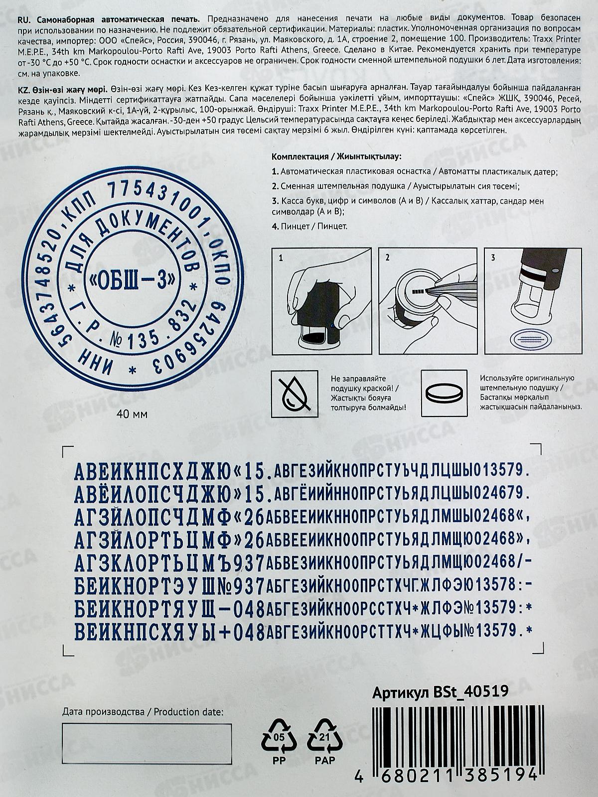 Штемп OfficeSpasce самонаб.автомат 2круг 40519*10