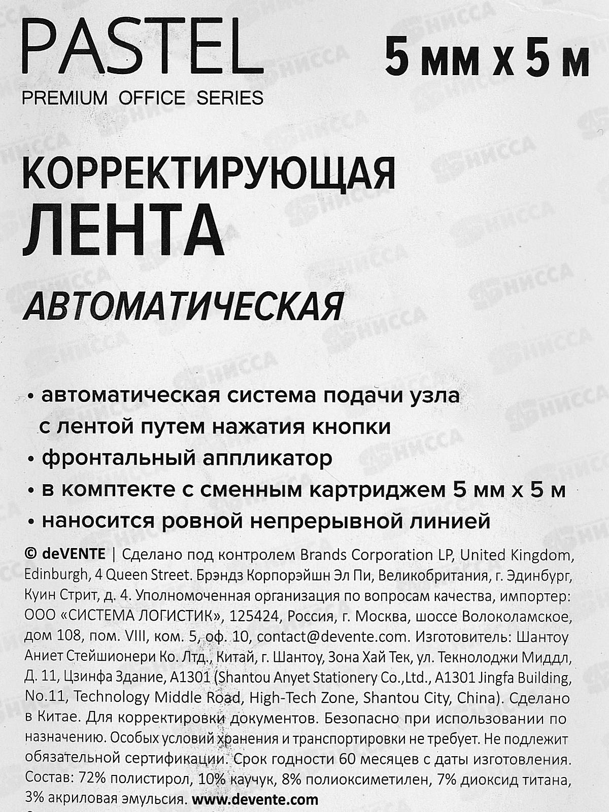 Корр.лента deVENTE Pastel 5мм*5м сиреневый корпус 4062340 *12