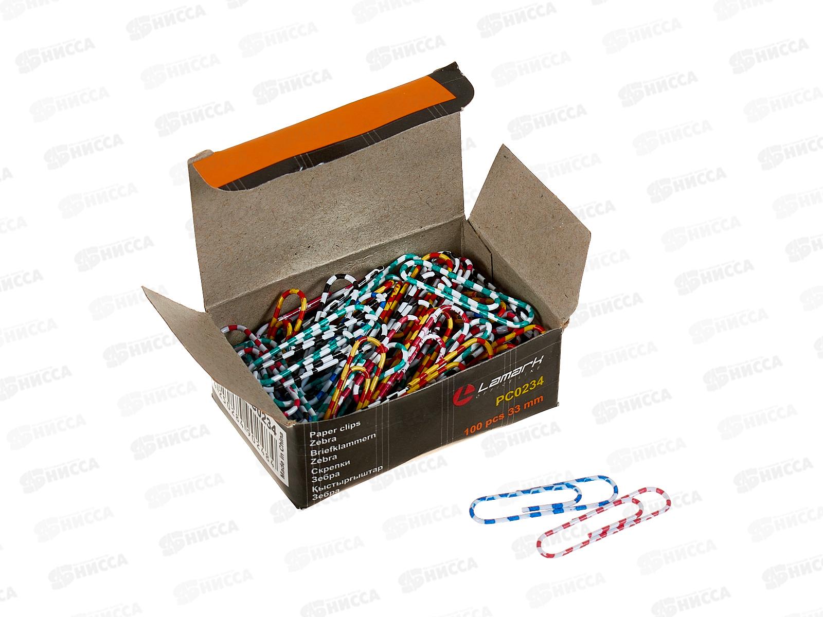 Скрепки LAMARK 33мм 100шт п/у, зебра, PC0234 *10/100