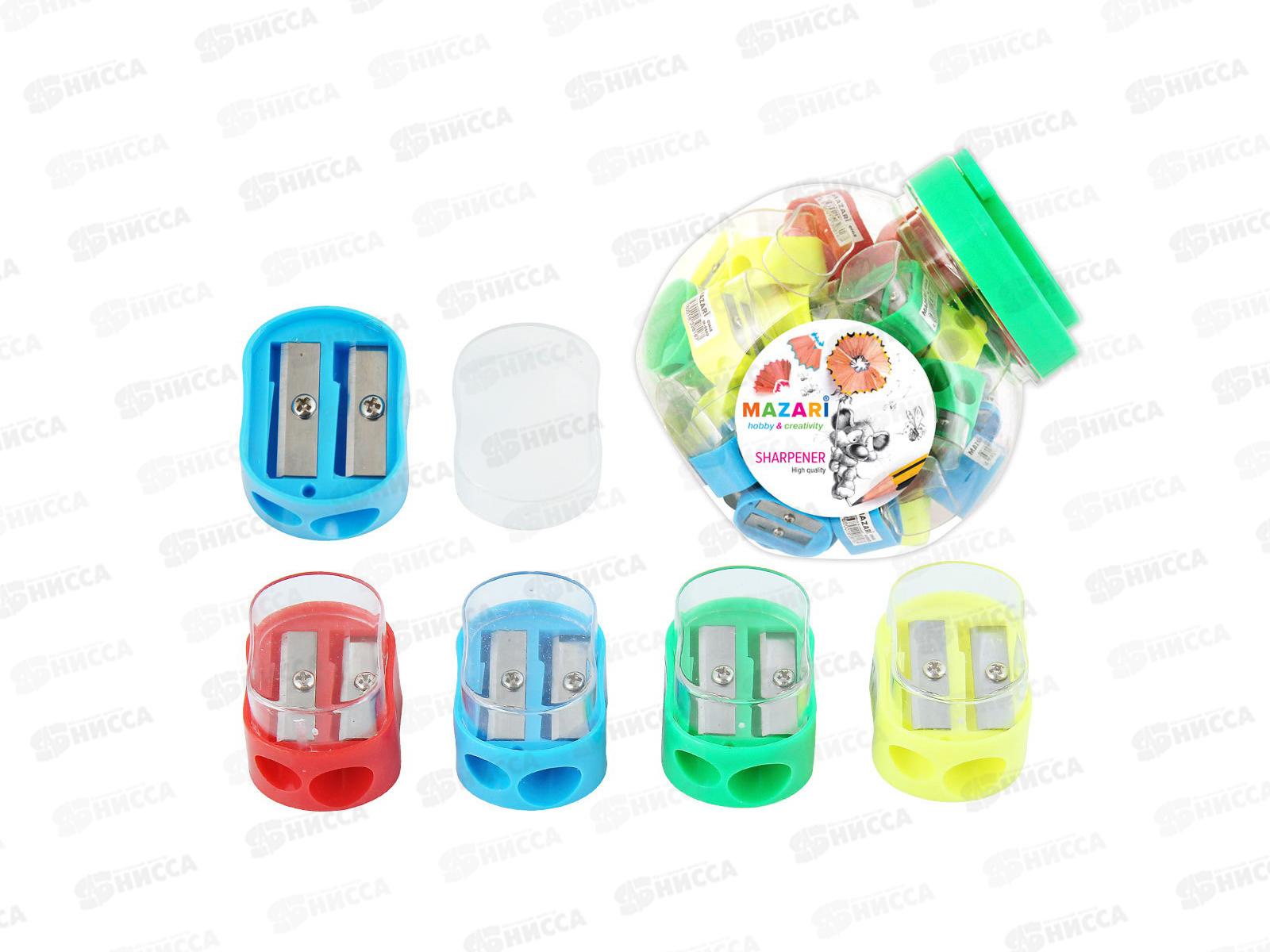 Точилка MAZARI Ovale, 2 отверст,конт.4 цвета асс., M-6662 *12