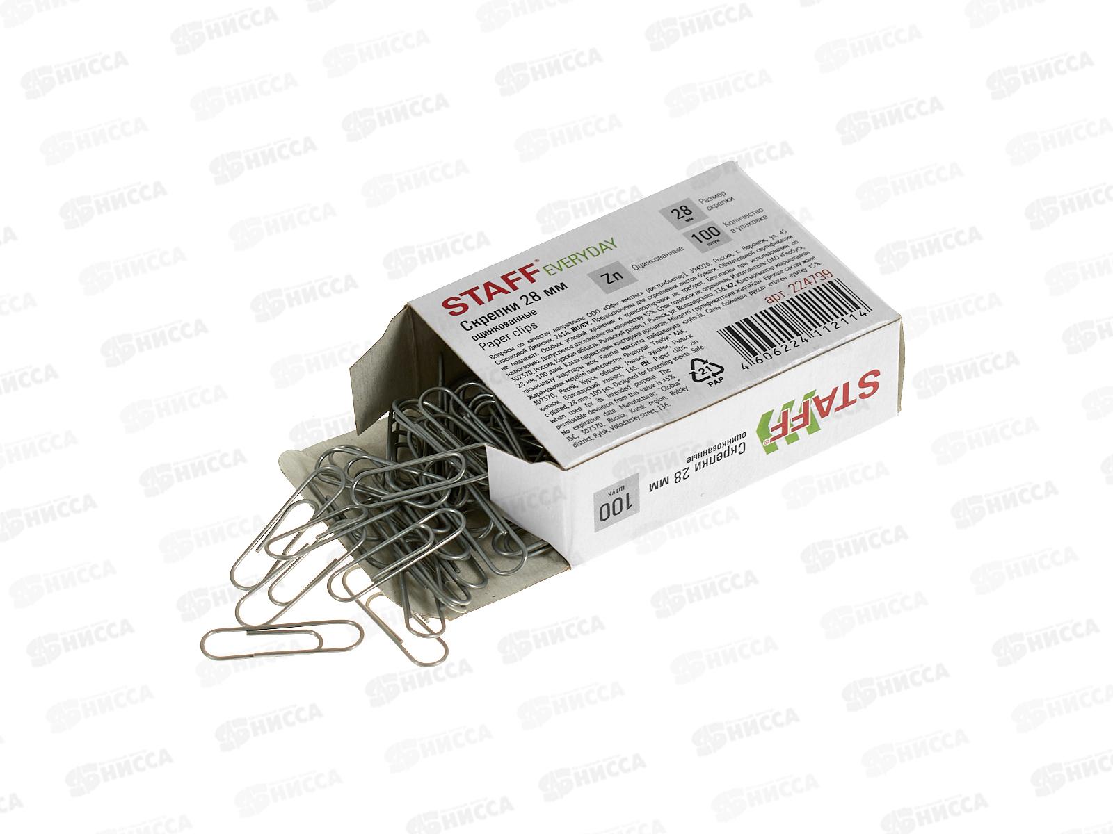 Скрепки STAFF 28мм 100шт, эконом оцинк.224799 *10